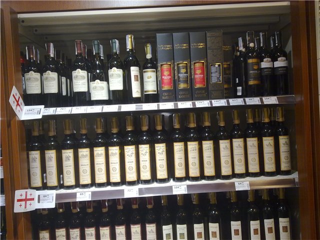 Масштабы руин города велики, и расположены на берегу мыса у самого моря. Пройдя и изучив всю территорию, мы вернулись к входу, перед ним было расположено некое подобие амфитеатра как в Греции. Рядом расположено здание хранилища денег (некое подобие древнего банка). В центре исторического комплекса, расположен внушительный храм князя Владимира. Так же на территории пара парней предлагают за плату ощутить себя «денежным» кузнецом и самому изготовить монету, с выбором изображения на свой вкус. Побродив, фотографировавшись, мы поехали далее, ближе к воде, кафешкам, свернув с дороги, интуитивно нашли обустроенный пляж с кафешками и аттракционами. Поужинав и полюбовавшись закатом, поехали в сторону ночлега. По дороге остановились в гипермаркете, посмотреть алкогольную продукцию и цены, соответственно прикупив что-нибудь интересное. Вот что предлагает стенд с грузинскими винами: