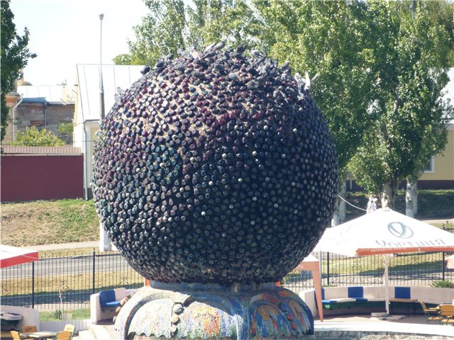 Вот фонтан в виде шара из бутылок: