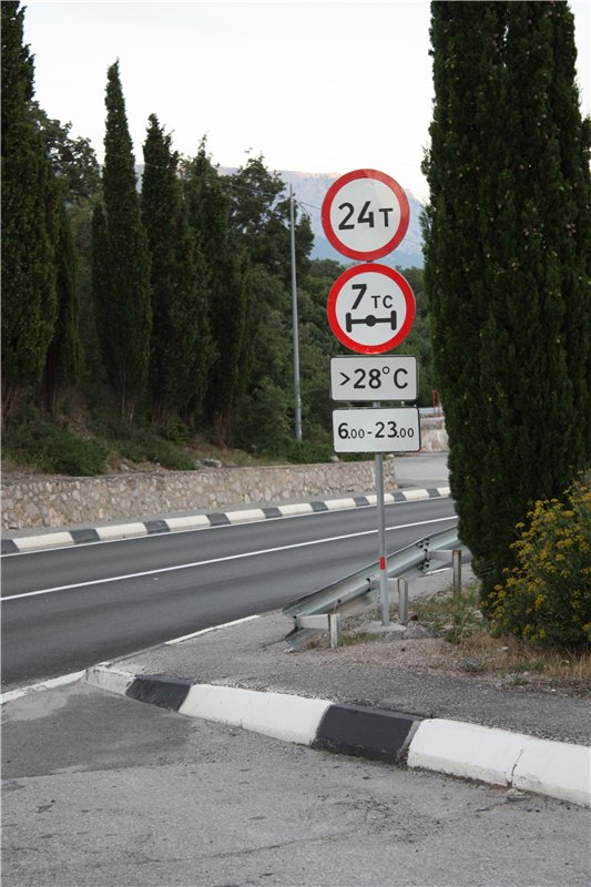 Перед Ялтой незаметно сзади подкрался картеж и начал крякать — первая машина ДАИшный джип, вторая кабриолет БМВ с седоватым мужчиной, третья джип с охраной — как позже выяснилось — это сын президента, у него на следующий день был день рождения. Если Вам попадается картеж — лучше незамедлительно прижаться к обочине и сбросить скорость — бывали случаи они просто сносят машины…