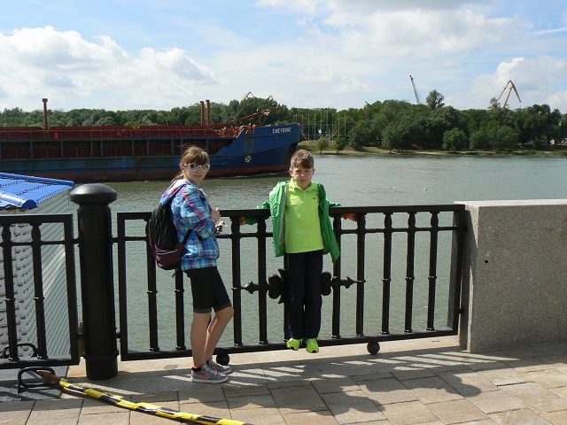 День 1-й. В таком составе с позитивным настроением мы 21 июня в 05:00 выдвинулись из города Ставрополя в направлении Ростова-на-Дону. Дорога до Ростова знакома, по Ставропольскому краю это хорошая трасса, с меняющими друг друга населенными пунктами. А вот при въезде в Ростовскую область около 100 км после Ставропольского края начинается путь с непостоянной ровностью дорожного покрытия. Около пяти лет назад разница между регионами была с обратной составляющей. Благодаря клиренсу нашего авто этот участок трассы мы преодолели без потери во времени и комфорте. В Ростове мы посетили автосалон (прохождение текущего ТО на машине), ввиду чего «потеряли» около 4-х часов времени поездки. Эту часть мы посвятили обеду, прогулке по набережной и речной часовой экскурсией по реке Дон (цена за экскурсию на семью 1040 руб.)