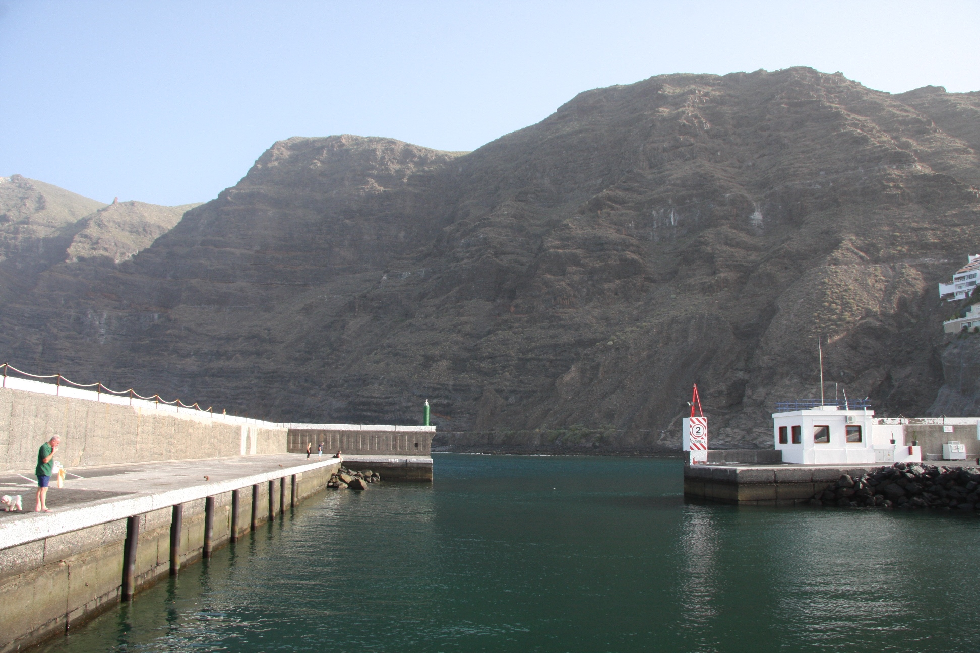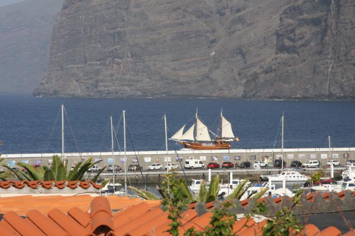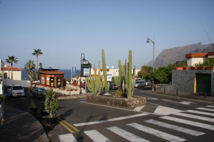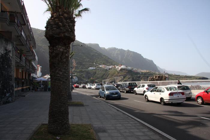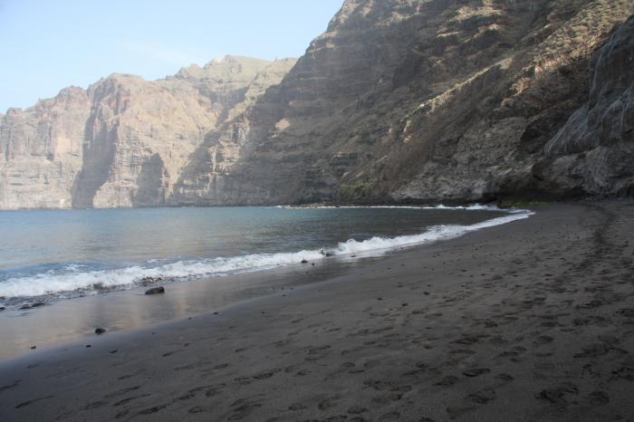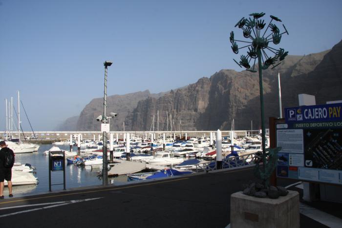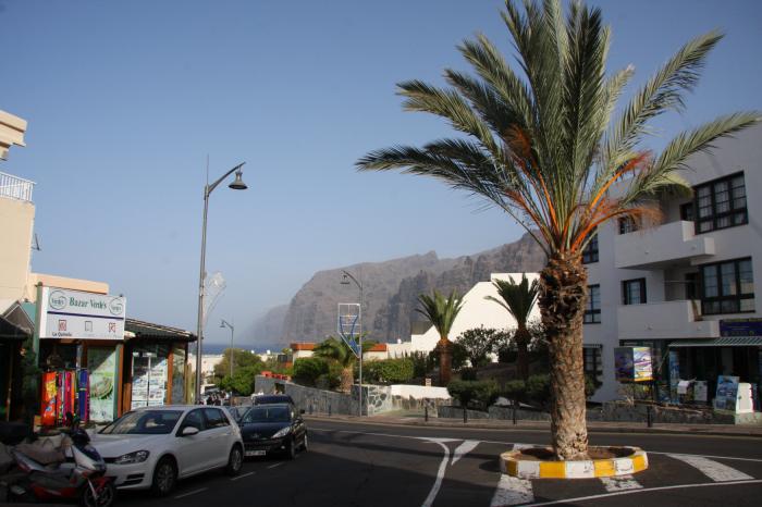 Всё. Пора в путь. Начинаем с красной галочки и далее поворачиваем налево на TF-1. Подробный маршрут лучше смотреть на картах google. Магистраль TF-1 значительно продлили. Совсем недавно приходилось от съезда на Аrmeñime (я называю просто – Армения) плестись вверх узкой дорожкой сквозь маленькие городишки. Теперь же летишь до Santiago del Teide не притормаживая. Там мы сделаем небольшую остановку, но сначала заезжаем в Los Gigantes. Знаменито это место своими дорогими отелями, живописным пляжем, отвесными скалами. Отсюда стартуют прогулочные кораблики, увозящие туристов в открытый океан, чтобы полюбоваться роскошными видами со стороны воды.