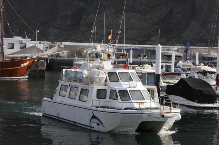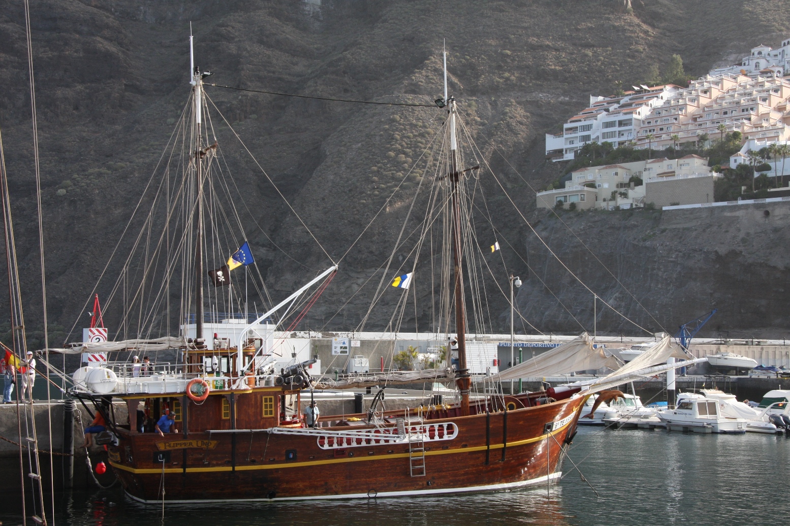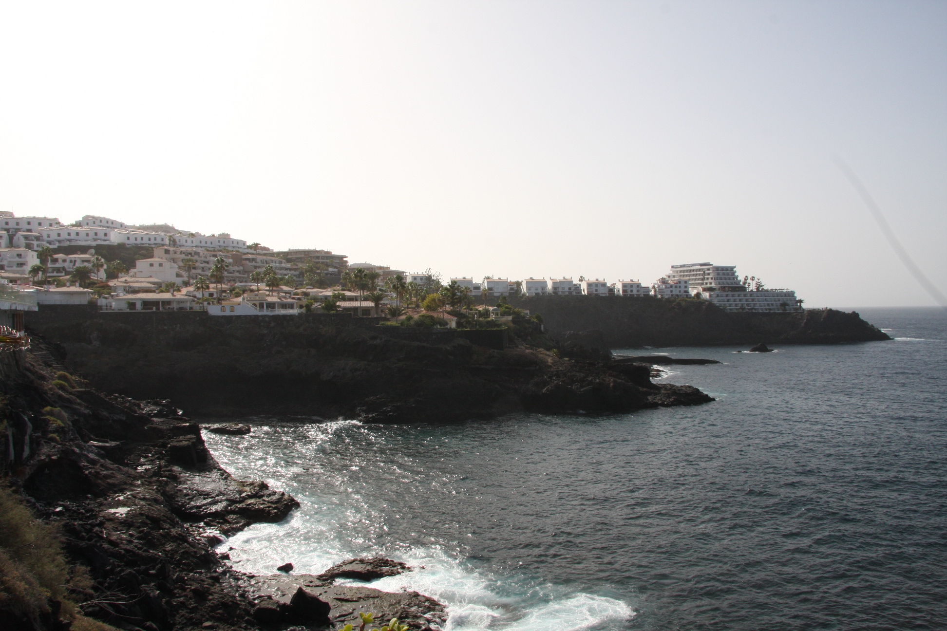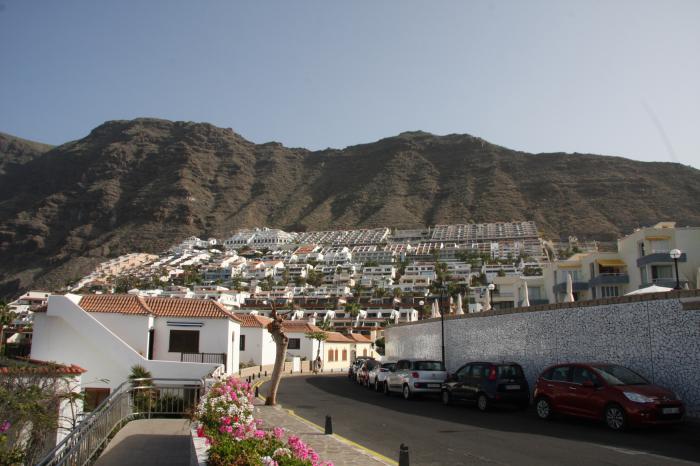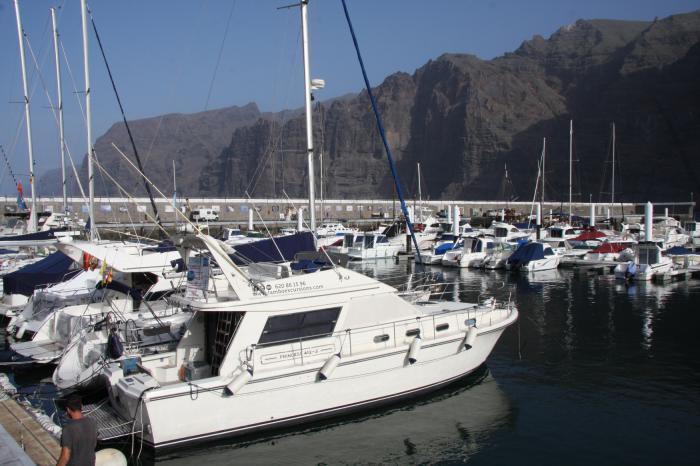 Всё. Пора в путь. Начинаем с красной галочки и далее поворачиваем налево на TF-1. Подробный маршрут лучше смотреть на картах google. Магистраль TF-1 значительно продлили. Совсем недавно приходилось от съезда на Аrmeñime (я называю просто – Армения) плестись вверх узкой дорожкой сквозь маленькие городишки. Теперь же летишь до Santiago del Teide не притормаживая. Там мы сделаем небольшую остановку, но сначала заезжаем в Los Gigantes. Знаменито это место своими дорогими отелями, живописным пляжем, отвесными скалами. Отсюда стартуют прогулочные кораблики, увозящие туристов в открытый океан, чтобы полюбоваться роскошными видами со стороны воды.