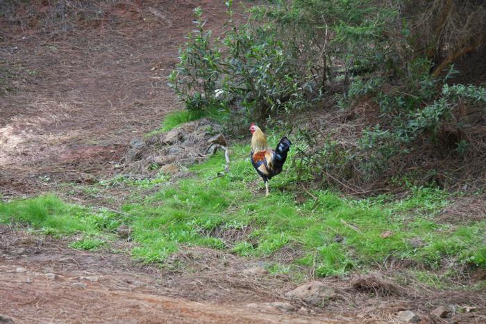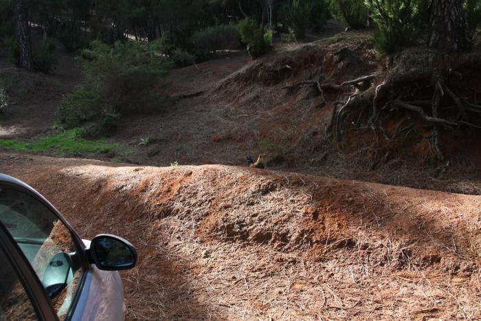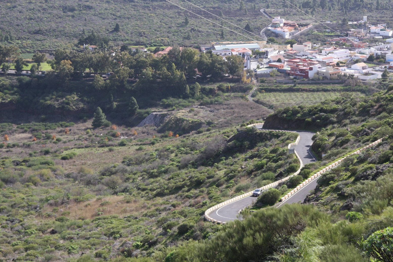 Часы показывают, что до темноты ещё далеко, да и силы нас ещё не покинули. Решаем ехать домой через вулкан. Соответственно нам нужно попасть на восток острова и через лес Bosque de la Esperanza подняться к вулкану El Teide. До поворота на лес долетели быстро, т.к. двигались по скоростной трассе TF-5. Ещё около 10 км мы катились по деревням, пока не доехали до живописного местечка, где удалось приткнуть машину. Напомню, что дело было 28 декабря и через каких-то три дня наступит ГОД ПЕТУХА. Вдруг за спиной раздался голос жены: «Ой, смотри!»