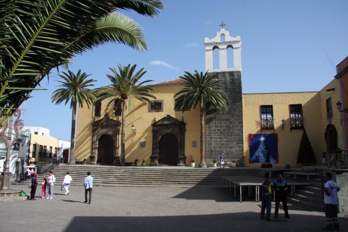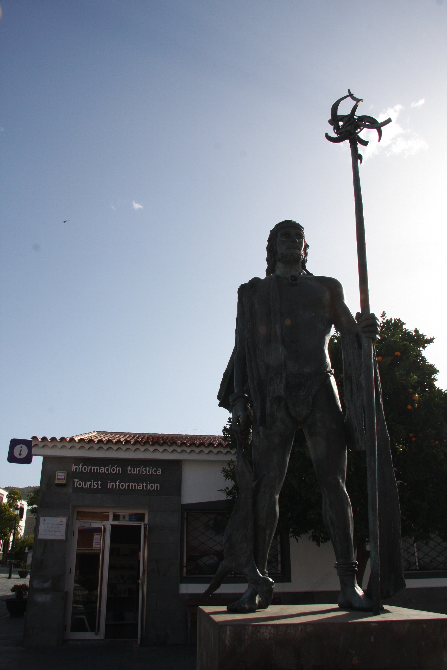 Маленькая площадь с гордым представителем племени гуанчи, держащим в руке добытого им кролика.