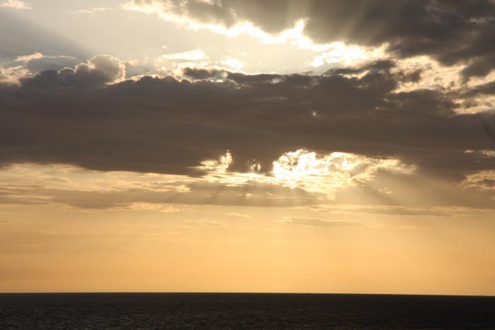 Утром на пляже никого нет, хотя уже совсем не холодно.
