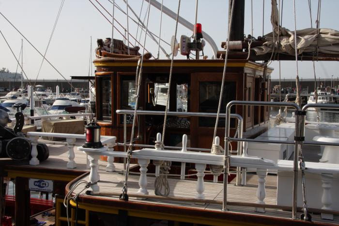 Как обычно возникла проблема с парковкой. На платную ставить не хотелось бы. Места, обозначенные белым пунктиром все заняты, на желтых нельзя. Но вот есть одно свободное место, где синяя прерывистая. Занимаю его, но что-то засомневался, лучше спросить у кого-нибудь. Ага, дядька к своей машине подходит, вот он мне всё и расскажет! Оказалось, что нужно оплатить стоянку через автомат и оставаться разрешено не более двух часов. Едем дальше. Удача, паркуемся и направляемся в небольшой порт для частных судёнышек.