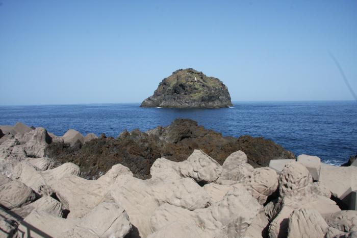 Домчались до очередной галочки (синего цвета). Garachico достаточно густонаселённый по здешним меркам городок. Длинные пляжи уже заполнены отдыхающими. Опять беда с парковочными местами. И опять везение. Идём гулять. Метрах в 150 от берега возвышается маленький островок.