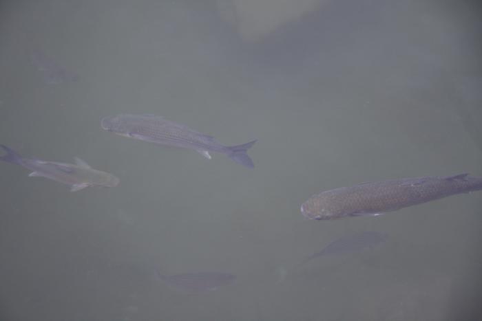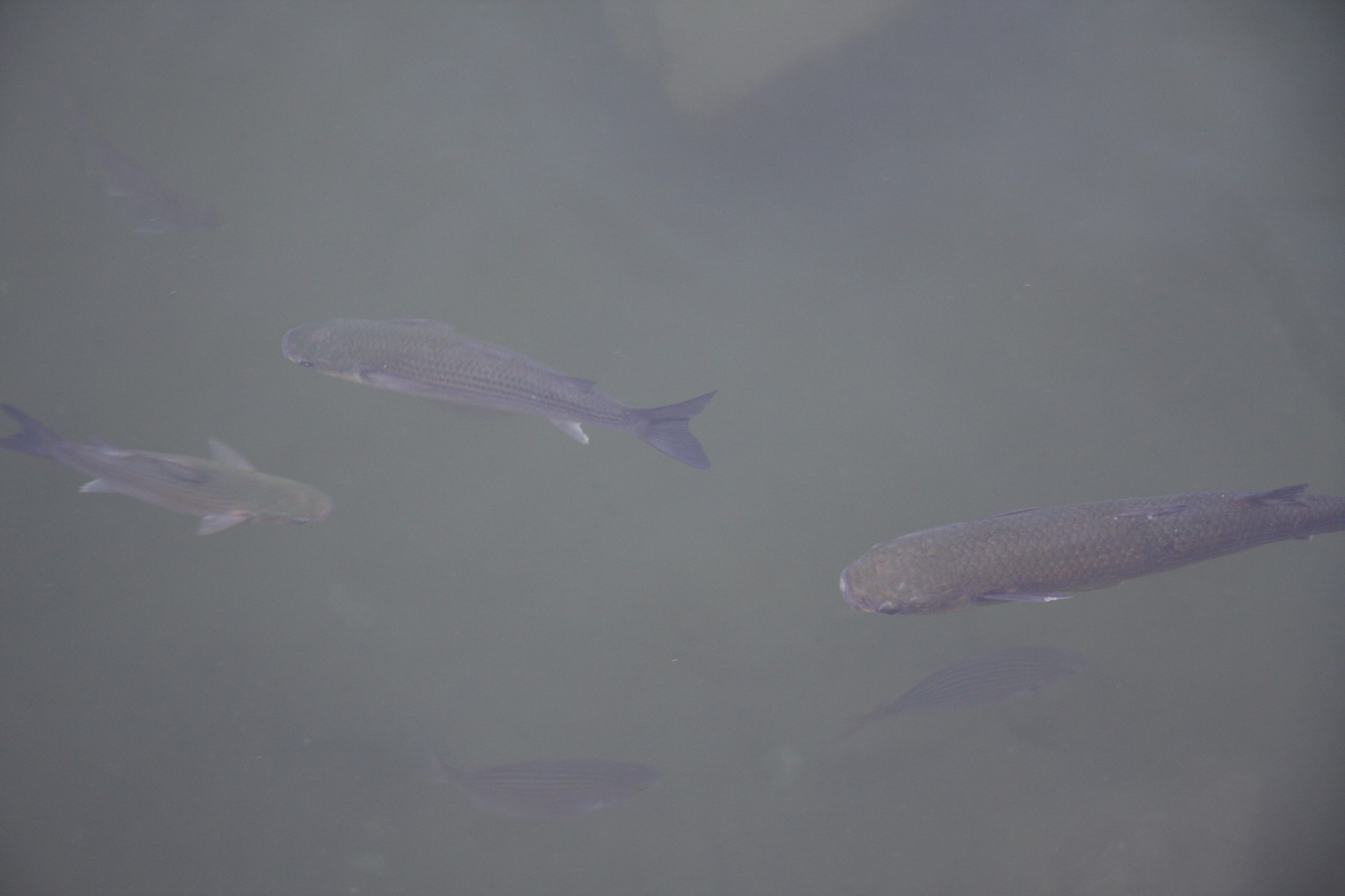 Прямо в порту пасётся кефаль (или вид очень похожий на кефаль).