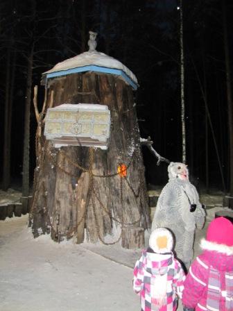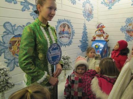 После мы посещаем почту Д.М., в которой он встречает нас(я так думаю их было двое, но они оба так загримированы одинаково, что закралась мысль, что летает он от терема на почту и обратно), поздравляет и мы фотографируемся с ним на память.Стишок рассказать нет времени, хотя мы готовились.