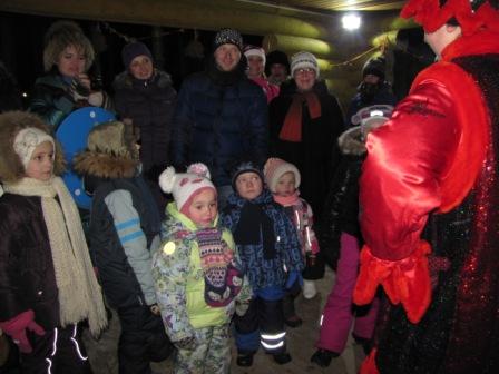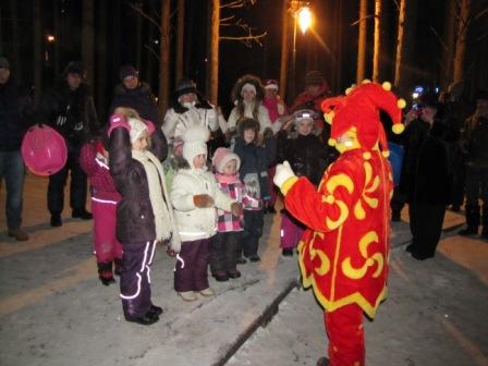 Далее мы видим сам терем Д.М.Возле терема идет театрализованное представление, время от времени выходит Д.М. на улицу всем пожелать всего и поздравить с праздником…
