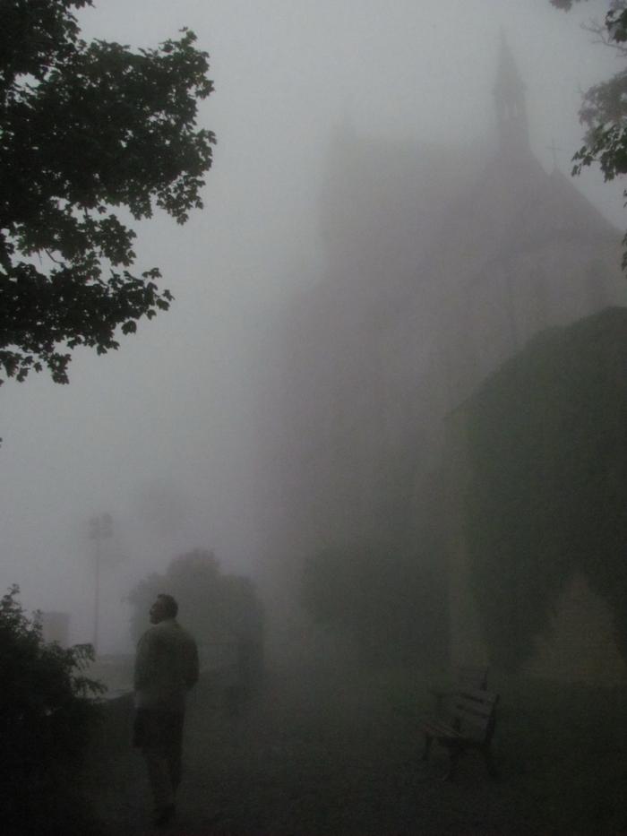 Поэтому Замок, на который открывается прекрасный вид издалека, так как он на вершине горы, мы и вблизи то не увидели. Но все-таки мы осмотрели Замок изнутри. Снаружи полный туман, ничего не видно, зато фотографии получились удивительные.