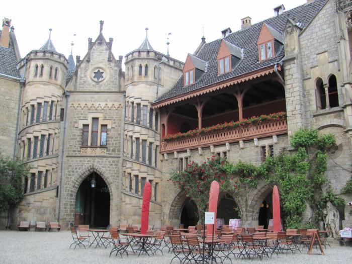 Так как паром прибывает в Росток поздно вечером, то на ночевку мы решили остановиться в городе Шверин в 90 км. от Ростока. Он находится на пути к цели путешествия — Замкам Рейна, и поэтому на следующий день нам надо уже меньше ехать и сетевой отель «ETAP hotel» всего 22 евро за номер. Прибыли мы в отель около 23-00. На входе ввели номер брони в автомат (т. к. в такое время портье уже нет), вставили карту и ключик от нашего номера был у нас в руках. Обстановка в таких отелях спартанская, но все удобства в номере. На следующий день подъем в 7-30. Едем в Кассель. Воскресенье — магазины закрыты — держимся на домашних запасах. Первый объект для осмотра — замок Мариенбург, недалеко от Ганновера.