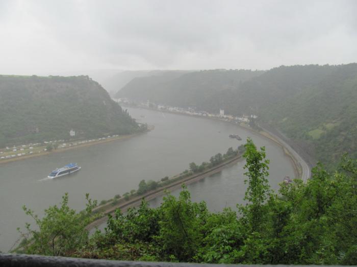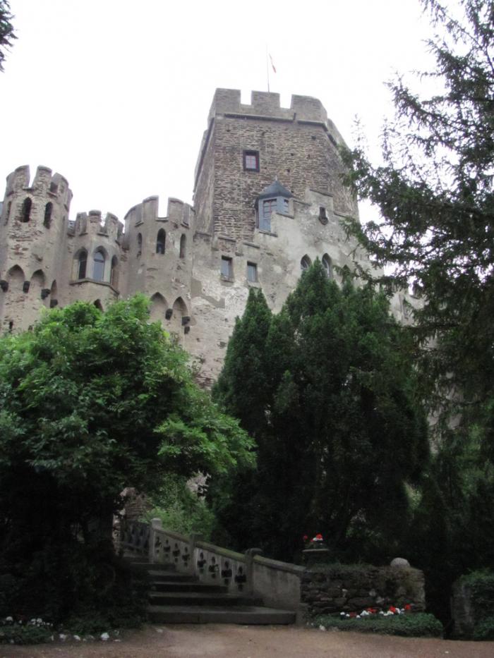 На следующий день случился полный облом. В этот день мы должны были ехать вдоль Рейна на юг, осматривать расположенные по берегам замки, и любоваться винной дорогой Германии. Но с утра разразился ливень, который не прекращался весь день. Удалось осмотреть только замок Марксбург ( 15 евро на всех), больше из-за ливня не видно было ничего.