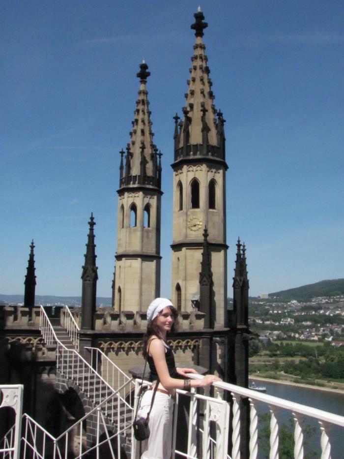 Это место слияния рек Мозеля и Рейна. На улице было жарко – 33, но мы мужественно осмотрели огромный монумент на месте слияния рек – памятник Вильгельму. Так как в Кобленце в это время проходила выставка BUGA, крупнейшая цветочная и садово-парковая выставка, все перегорожено, народу полно, а саму выставку мы посещать не собирались, мы рванули в замок Штольценфельц, в 20 км. от Кобленца.