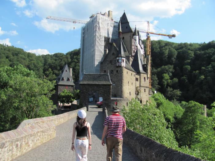 Вдоль берега склоны гор покрыты виноградниками а по берегам большое количество кемпингов. После заселения мы поехали по прекрасным долинам и ущельям к замку Эльц.