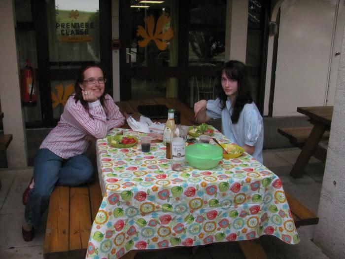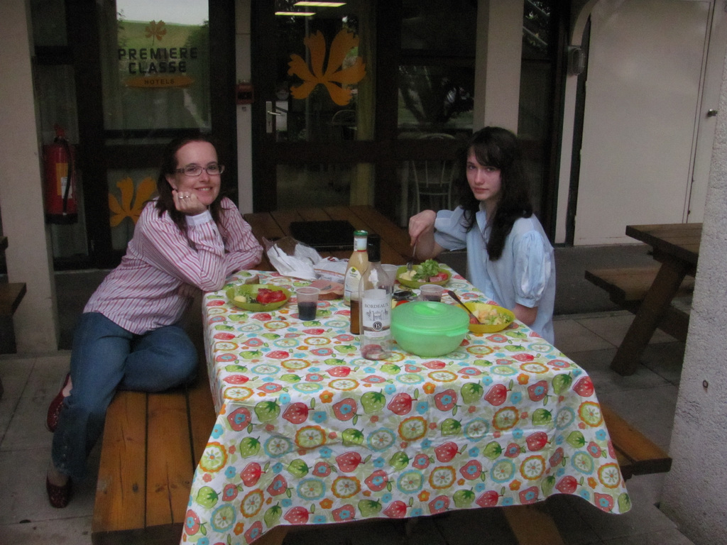 К вечеру, направились во Францию, в Мюлуз, там был заказан отель «Премьер класс» — 38 евро. На улице было тепло, возле отеля стояли столы и мы весь вечер провели как у себя на даче ( пробег за день 160 км).