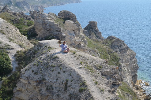 Самый большой город по дороге это был город- Армянск. Дороги были не загружены. К вечеру добрались до мыса, заехали в поселок Оленёвка, там остановились в частном секторе. Цена за одну комнату (без кондиционера, удобства на улице) 2-х человек 600 рублей. На следующий день пошли на море, оно приятно удивило своей стеклянной прозрачностью, но увы оно было холодное, кругом плавали голубые, сиреневые медузы. Очень приятно было плавать с маской, со стороны каменистых пляжей. Этот мыс в основном для отдыха подходит любителям дайвинга. За 7 дней отдыха на мысе мы посмотрели местный дельфинарий,«чашу любви» где снимали фильм «Человек Амфибия» и просто побродили по его скалистым берегам. Отпуск закончился, пора в путь.Спасибо, Крыму !.