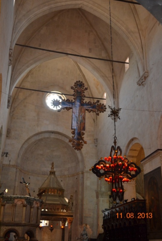 На следующий день, проехав большую часть Хорватии, мы приехали в среднюю Далмацию, в древний город Трогир, основанный в III веке до н.э., о котором я читала, что весь город – это один большой памятник, каждое строение, будь то дом, церковь, крепость или дворец. Город расположен на небольшом острове между материком и островом Чиово.