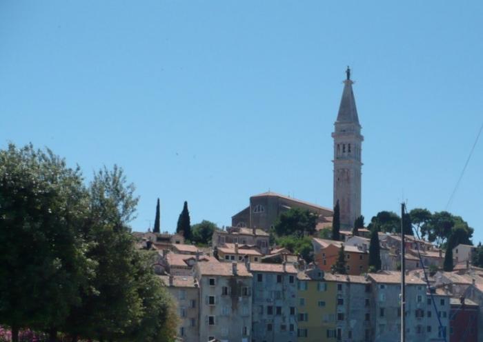 Поднялись на холм и посетили очень красивую церковь Святой Эуфимии, вышли на площадь, в которую подобно ручейкам, стекалось множество узких извилистых улочек, прогулялись по набережной, пофотографировались с яхтами. Гуляя по старинным узким улочкам, видели, как небольшой автомобиль пытался по ним проехать. Водитель остановил авто, вышел, сложил зеркала заднего вида и только потом смог медленно и осторожно протиснуться между домами. Часть домов стоит почти в море, так что рыбачить можно не выходя из кухни. На следующий год, когда мы на авто сами приехали в Истрию, было решено — никаких гидов и навязанных магазинов.