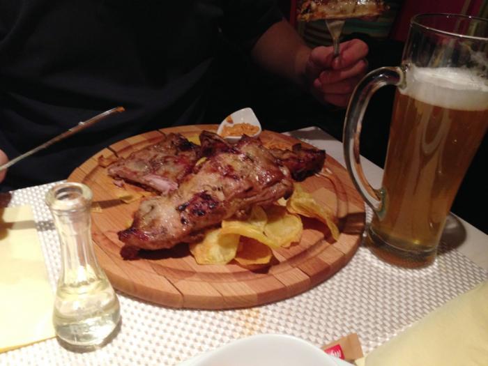 Кафе и ресторанов в Брашове полным полно, на все вкусы и кошельки. Я хочу рассказать только о двух пищевых точках. Во-первых, недорогом кафе, где мы часто кушали (адрес Brasov, Strada Crisan, 6, “Roata”), 25 минут пешком от Ратушной площади. Завтрак – 500-600 рублей, обед – 600-900 рублей, порции объемные, все очень вкусно. Основные посетители – румыны, с 15 до 16:00 частенько нет свободных мест. А рядом с Ратушной площадью (буквально за углом) нашли очень дешевую столовую (адрес Strada George Baritiu, 2). Обед – 550 рублей, хороший ассортимент блюд, только нет свинины. Говоря «мы», я имею в виду мою семью, т.к. наша молодая родня поставила себе целью обойти как можно больше кафе и ресторанов города, и цена их питания была, естественно, значительно выше нашей. Однако, дешевле ростовских цен. Так, самый дорогой ужин со спиртным и громадными! порциями на четверых стоил 3200 рублей, при этом они не смогли съесть все и остатки забрали с собой!
