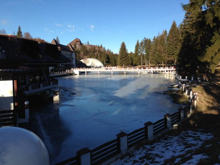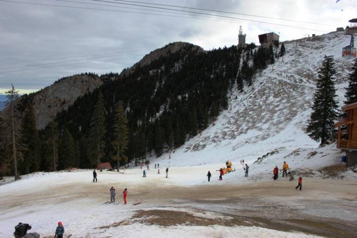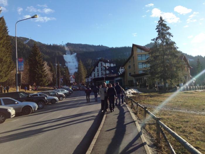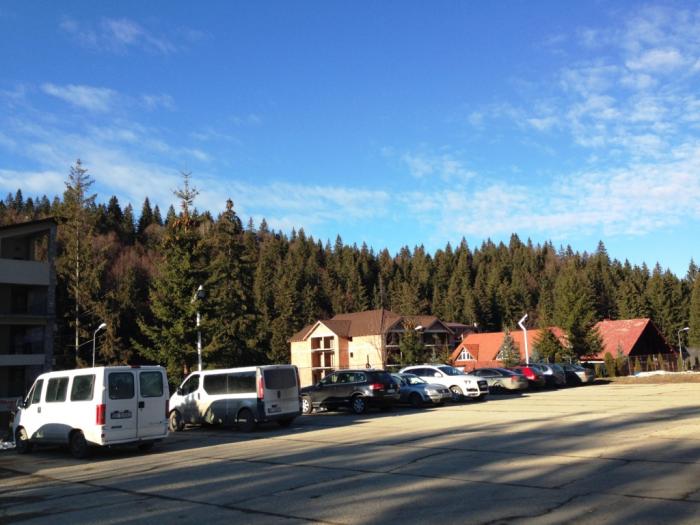 Основные туристы – румыны, плюс немного украинцев и русских. Красивое место, горы покрыты высоченными елями неведомой разновидности, однако хвойный запах отсутствует. К сожалению, во время нашего пребывания вообще не было снега, поэтому насладиться видами заснеженных гор мы не смогли.
