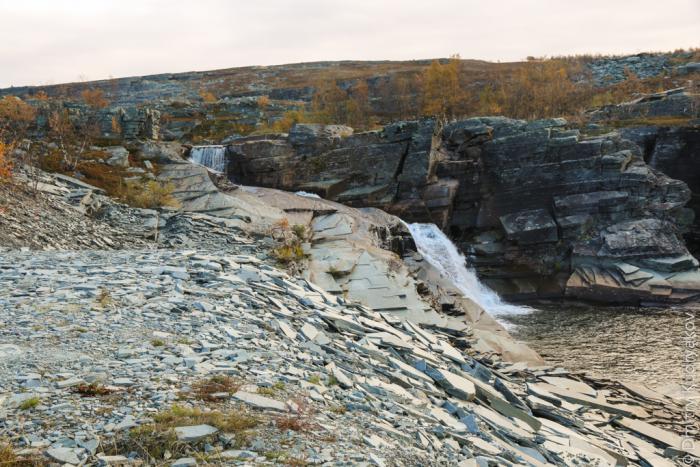 От шлагбаума 6 км пешком, ажно передернуло от злости. Вокруг шлагбаума местность дикая, но понатыкано кемперов — немеряно, видимо приезжают отдыхать, и охотников много. Порасстраивался я, да делать нечего, развернулся кое-как на дороге из одной полосы и поехал обратно. И тут встречаю — экскурсионный автобус — оказывается, предприимчивые норги возят на каньон экскурсии автобусами из Альты. Хотел было рвануть, но время тик-тик, я иду по графику. Плюнул, поставил галочку в поминальнике чтобы в следующий раз не забыть и поехал дальше.