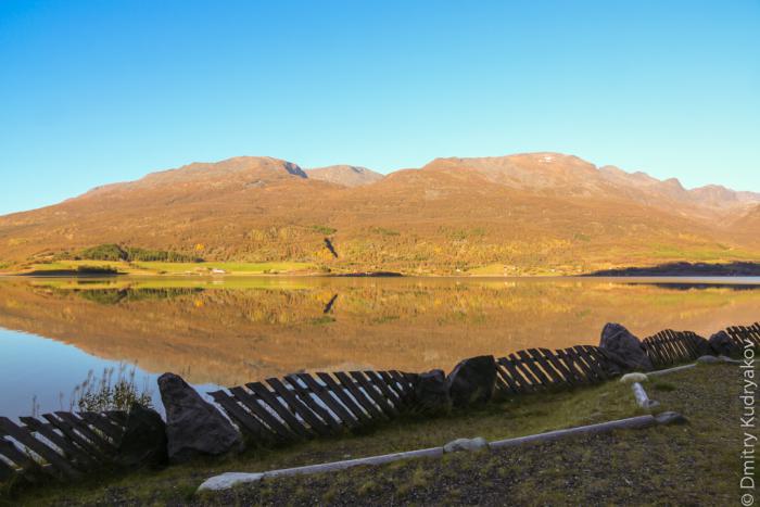 Спускаюсь по ущелью, буквально через несколько минут въезжаю в небольшой городок — Шиботн, поворот направо и передо мной открывается Лигнен-фьорд.
