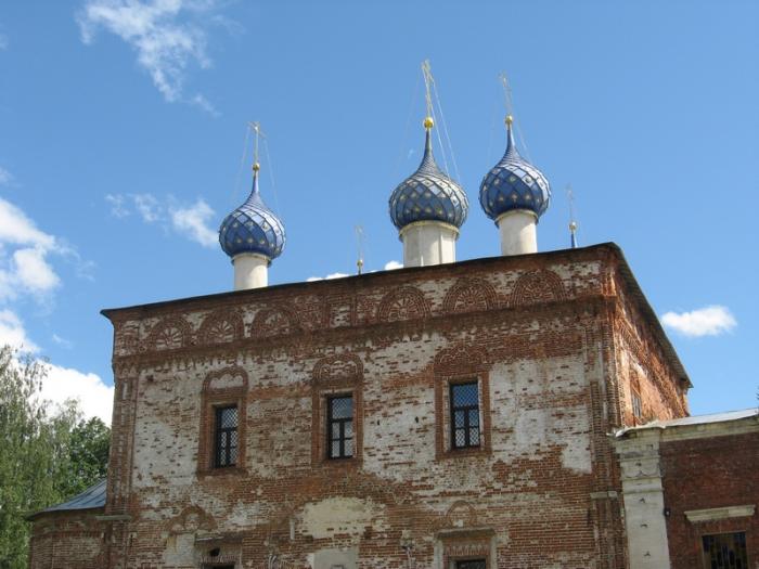 Рядом с ним – еще в более ранней стадии реставрации Успенская церковь с колокольней: