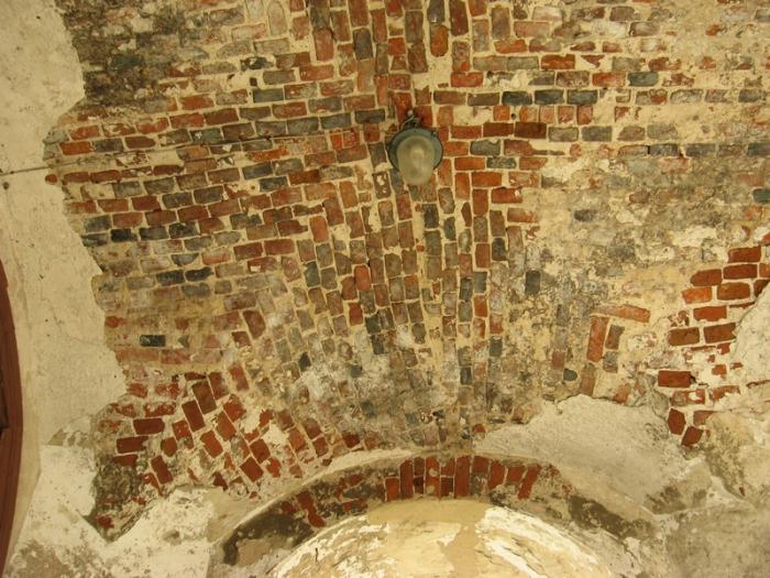 Не знаю, сделал ли я открытие… Конечно же, нет :) Но иногда приятно что-то понять без подсказок. На фотографии ниже сводчатый потолок над западным входом в церковь – кирпичная кладка.