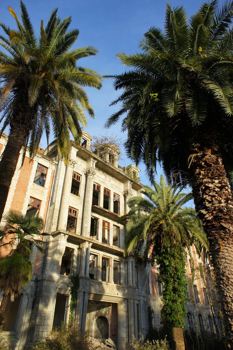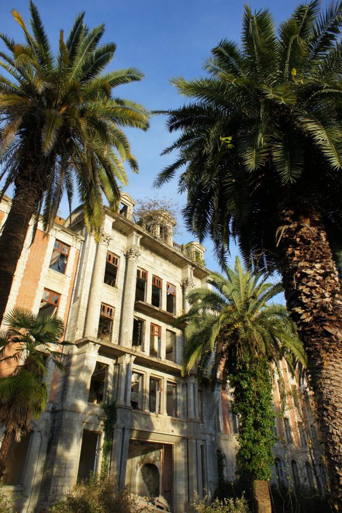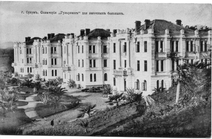 Проезжая поселок Гулрыпш на одном из холмов можно увидеть длинное красноватое здание без крыши очень интересной архитектуры. Когда-то оно выглядело, как изящный замок, в котором в самую пору было бы жить королям. Тот, кто не знал, даже и не догадался бы, что это всего лишь санаторий для легочных больных, который ранее был настоящим дворцом.