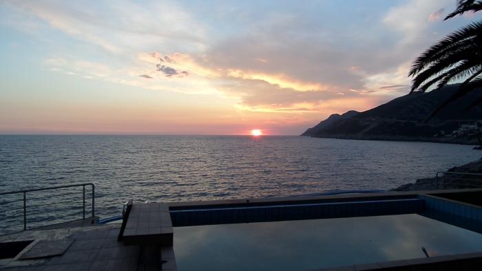 Остановились в отеле Калампере на пляже в Добрых Водах. Взяли единственный свободный номер (17) с шикарным видом на море. 100 евро за ночь.