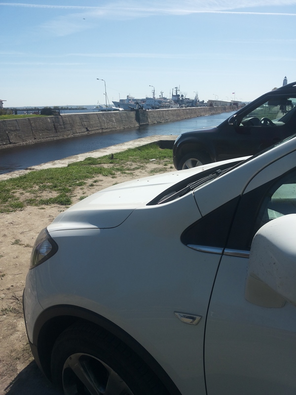 Насладившись погодой и красивыми видами мы поехали в Кронштадт. 20 км.пути по КАДу, 10-15 минут езды. Кронштадт- (от нем. Krone — корона и Stadt — город) — город-порт в России, расположенный на острове Котлин и прилегающих к нему более мелких островах Финского залива и дамбе. Является единственным населённым пунктом (городом) Кронштадтского района города федерального значения Санкт-Петербурга и его внутригородским муниципальным образованием. С парковкой в городе проблем нет.