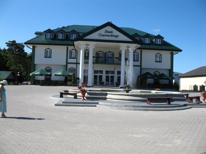 Как бы то ни было, дорога продолжается, приближаемся к Белостоку. День клонится к вечеру, самое время выбрать место для ночлега. Останавливаемся наугад в одном из повстречавшихся мотелей…не впечатляет. То есть, переночевать, конечно, можно, но больно уж спартанская обстановка. Решили проехать еще несколько километров, до отеля «». И тут уже обстановка была совсем другой! Отель отделан под старопольское поместье, дизайн изумительный. Огромный ресторанно-бальный зал, повсюду цветы (неважно, что искусственные), на стенах картины (неважно, что постеры), на заднем дворе площадь с фонтаном, рядом небольшой парк… Нам предложили трехместный номер площадью примерно метров 50 (я не шучу) за 290 злотых (примерно 75 евро). От такого предложения мы не могли отказаться.