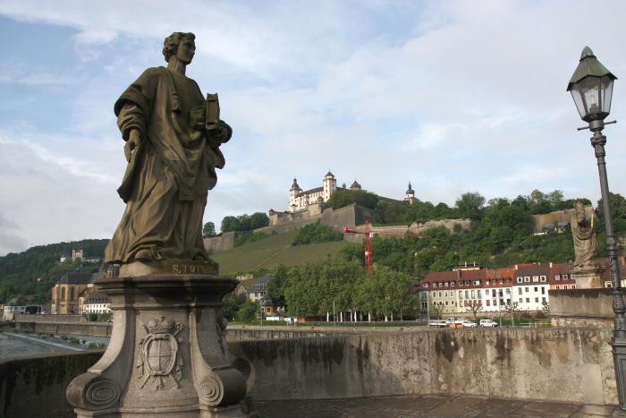 Пройдя сквозь центр Старого города, мы вышли на берег. Старый майнский мост (нем. Alte Mainbrücke) с фигурами епископов и святых является одним из символов Вюрцбурга.