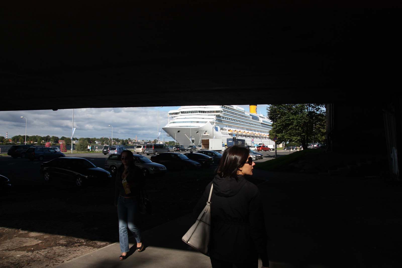 Утро, большое кол-во туристов с круизных судов. Недавно углубили фарватер Даугавы и теперь большие корабли швартуются рядом с мостом Vanšu tilts, а на противоположном берегу высится гора песка. Правда, обещают, что кучу уберут до нового года. Вантовый мост Vanšu tilts является символом современности. Верх инженерный мысли. На момент открытия в 1981 году этот мост являлся самым длинным вантовым мостом в Европе. Подходим мы к Домскому собору – кафедральный собор города Риги, его символ и одна из главных достопримечательностей. Является крупнейшим средневековым храмом стран Балтии. Толпа туристов на входе, пристроились, вошли в собор. Гиды рассадили группы по лавочкам послушать органный концерт. Присели и мы, послушали, обошли по периметру. Кроме величественного органа, смотреть особо и нечего. Собор принадлежит Евангелическо-Лютеранской Церкви Латвии. Все чисто и просто. Ни тебе устремленной в небеса готики, ни пышности римско-католических церквей. На выходе заметили, что вход оказывается платный – 2 лата. Вот и вернулись нам деньги, «сожранные» вчера парковочным автоматом. По булыжной мостовой мы вышли к мосту Vanšu tilts. Производит сильное впечатление. Полюбовались раскинувшейся за Даугавой панорамой, обошли вокруг рижский замок и вернулись в старый город.