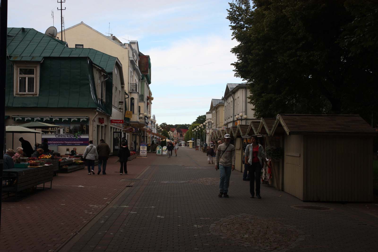С утра мы отправились гулять в Юрмалу. Заплатили 1 лат на въезде, оставили машину на бесплатной парковке возле офиса по туризму на улице Jomas 42. Пешеходная улица Jomas была пустынна.
