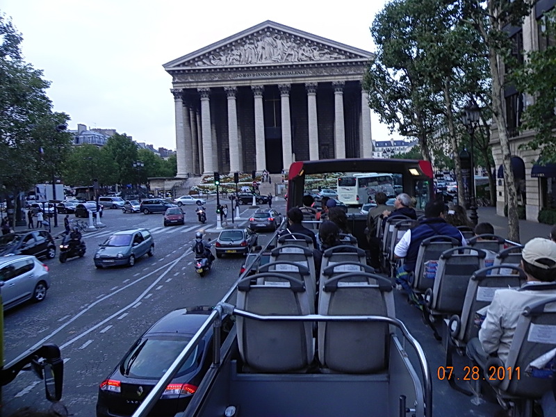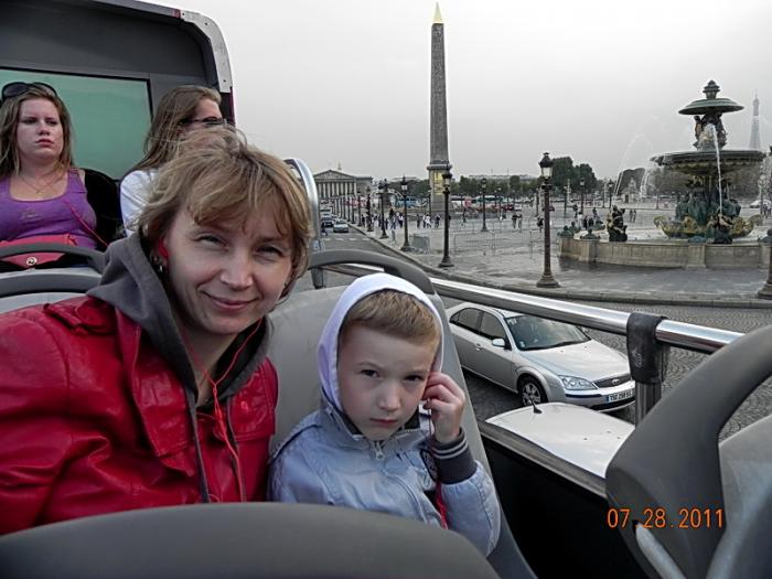 На любой остановке вы можете выйти, осмотреть окрестности и потом снова сесть на следующий, точно такой же автобус, при этом платить уже ничего не надо. Автобус оснащен аудиогидом в т.ч. и на русском. При входе выдают наушники и рекламный буклет с маршрутом. С нас взяли около 60 евро. Понимание, почему взяли так мало, пришло позже. А пока, не смотря на мерзкую погоду, мы все же залезли наверх, и под мерное щебетания механического голоса, проехали по Парижу от «Нотердама» до Дворца Шайо, это примерно половина маршрута. По дороге увидели и Опера и Елисейские Поля, и Площадь звезды с Триумфальной аркой, и купол Собора Инвалидов, и ещё какие-то достопримечательности.