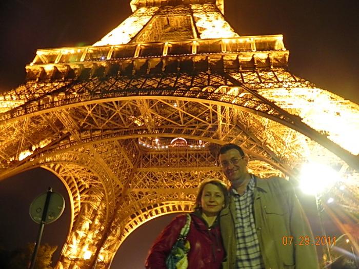 Подошли, сказали «Бонжур» и попытались на смеси всех языков мира объяснить, что нам нужно к «Нотердаму». В ответ на сносном русском услышали: «здравствуйте». Оказалось, извозчик поляк, но уже 30 лет живет в Париже и сейчас зарабатывает себе на жизнь вот таким способом. Хозяин мотоповозки объявил цену 20 евро, но как только понял, что за эти деньги мы не поедем, тут же сбросил цену до 15, но мне кажется, что реально эта дорога стоит 10, пусть и на таком относительно экзотическом для нас средстве передвижения. Торговаться не хотелось, и мы согласились. Поляк очень быстро довёз нас до «Нотердама», провезя по набережной мимо Площади звезды, Елисейских полей и Лувра. При этом ехал он довольно шустро, и все время махал руками, указывая на достопримечательности и выкрикивая их названия. К 22-00 мы уже были у дверей «Нотердама». И тут, о чудо, двери в Собор были открыты. Мы естественно зашли, денег с нас не взяли, внутри полумрак, и только звук органа льётся из-под сводов Собора. Католичество это не наша вера, но этот огромное, полупустое, еле освещённое религиозное помещение произвело очень сильное впечатление. Мне даже показалось, в какой-то момент, что из-под свода этого здания на меня реально смотрит тот самый «Горбун». Постояв под величественными сводами, и купив в автомате за 2 евро памятную монету с изображением Собора, мы выбирались наружу. И так как мы были одними из последних посетителей, то в дверях увидели молодого человека со связкой настоящих Соборных ключей. Выбравшись на площадь перед собором (кстати, зимой тут общественный ледовый каток) мы увидели множество людей любующихся этим величественным, темным зданием с подсвеченным фасадом. Вдоволь насмотревшись, мы без проблем вернулись на парковку, забрали машину и около 23-00 выехали со стоянки. Понимая, что в этот раз мы уже больше не приедем в Париж, решили прокатиться по нему ещё раз, и ещё раз доехать до одной из главных его достопримечательностей — Эйфелевой башни. После 3 дней проведённых в Париже я уже боле-мене стал здесь ориентироваться (ну по крайне мере в центре), поэтому уже почти без помощи «навика» доехал до «Эйфеля». Кстати, на елисейских полях я заметил, что не все французы (а может это были и не французы) беспрекословно чтут ПДД. Так вдоль этой улицы, у каждого ресторана-магазина, стояли припаркованные машины, хотя кругом были знаки «парковка запрещена». Но справедливости ради нужно отметить, что тут же бойко работали полицейские и эвакуаторы, которые без особых церемоний грузили на свои платформы автомобили и увозили их. Но эвакуаторов было штук 5, а припаркованных машин сотни. Подъехав к Эйфелевой башне, мы поняли, что просто не имеем права не остановиться и не подойти к ней. С горем пополам запарковав машину в ближайшем переулке, мы пошли к башне, и тут произошло, то о чем я так много слышал. В начале каждого часа башня словно вспыхивает десятками тысяч фотовспышек и буквально икрится. Т.к. была полночь, то именно это и произошло! Нет, это великолепное зрелище, и только ради этого нужно будет еще раз побывать в Париже!