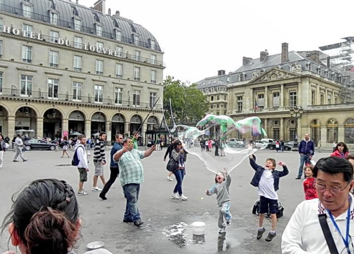 мы увидели человека пускавшего огромные мыльные пузыри. Вот уж раздолье для детей