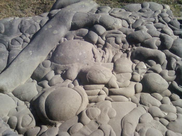 Полностью не разобрался, но на некоторых камнях(кстати, теплых и приятных на ощупь)народ лечит спины.Под другими лечат ноги.