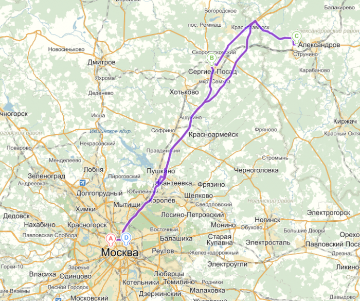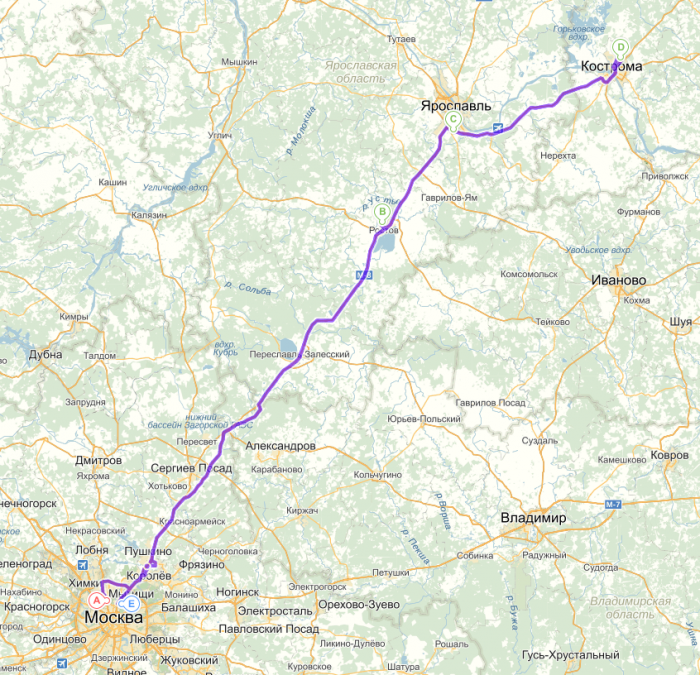 г.Москва — г.Владимир — г.Нижний Новгород — д.Дивеево — д.Цыгановка — г.Ковров — г.Шуя — г.Иваново — г.Суздаль — г.Владимир — г.Москва.
