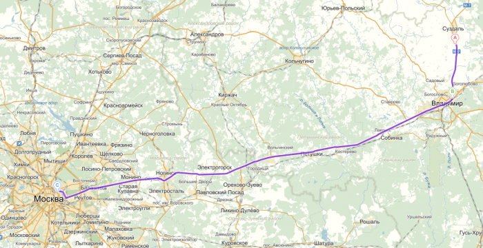 г.Москва — г.Владимир — г.Нижний Новгород — д.Дивеево — д.Цыгановка — г.Владимир — г.Суздаль — г.Владимир — г.Москва.