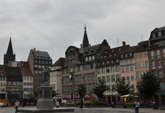 После собора погуляли по «Маленькой Франции». Накрапывал небольшой дождик. Жаль, что не успели покататься на кораблике. Выпив кофе с круассанами на одной из центральных старинных площадей, опять таки рядом с памятником Гутенбергу, отправились на парковку и выехали в сторону Парижа.