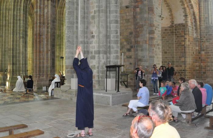 День 11. Утром мы попрощались с гостеприимными хозяевами сельской гостиницы и их уморительной собакой Катрин и отправились в знаменитый Мон Сен Мишель, в 25 км. Мы выехали достаточно рано и не прогадали. Без проблем запарковались и на автобусе-челноке отправились к крепости-аббатству. Можно пройти пешком или подъехать на лошадке. О Сен Мишеле столько написано, в том числе и отзывах путешественников, что не хотелось бы повторяться. Место фантастическое. Мы побывали на службе, обошли все аббатство. Виды сверху – умопомрачительные. Один недостаток – огромное, просто нереальное количество туристов. Но процесс посещения организован достаточно грамотно.