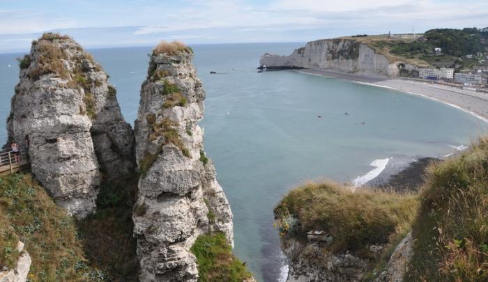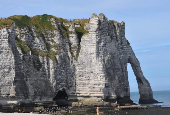День 13. День начали с поездки на так называемое Алебастровое побережье – в Этрету. Проехали знаменитый мост Нормандия. На всех форумах пишут, что мост платный – 5 евро. Так вот чтобы вы знали – уже 5 евро и 30 центов. Мост очень красивый, но после моста между данией и швецией, который мы проехали в прошлом году, удивить нас было сложно. А вот Этрета удивила. Много читал, видел фото и, разумеется, картин. Но действительность превзошла ожидания. Обязательно поднимитесь на скалы. Оттуда открывается ни с чем ни сравнимый вид.