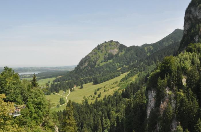 День 5. Утром мы начали свой путь в Нойшванштайн, в замок Людвига, который находится примерно в 120 км. От Мюнхена на юг. Дорога проходила по фантастически красивым местам, через чистенькие баварские деревушки и городки. На самом деле в этом месте находится не один, знаменитый по диснеевским мультикам замок, а три. Внизу расположены туристический центр, кассы, магазины, рестораны и пр. А до самого главного замка нужно добираться вверх 1,5 км. Либо пешком, либо на лошадке, либо автобусом. Прибыв достаточно рано, мы обнаружили, с одной стороны, уже огромное количество людей, желающих попасть внутрь замков, с другой, совершенно, на мой взгляд, безалаберную и очень странную, как для немцев, организацию всего этого процесса. Если бы мы захотели приобрести билеты, нам бы пришлось стоять не менее 3-4 часов в очереди. Ибо касс явно не хватало, а посещение самих замков возможно только в составе группы. Поэтому мы решили ограничиться осмотром самих замков и окрестных парков, поднявшись туда на лошадке. Места, конечно, вокруг изумительно красивые.