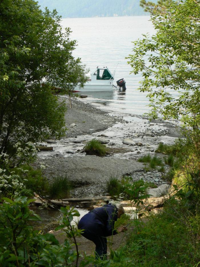 Там нас покормили вкусным обедом, и, оставив машины, мы поехали на причал. Вот тут стали появляться непредсказуемые нюансы поездки, которые за этот день сложились в интересную мозаику. Началось все с того, что предварительно позвонив капитану катера Анатолию, мы узнали, что количество места для багажа в катере ограничено. Лимит был в 5-6 сумок. На команду в 9 человек с детьми этого, конечно, было мало. Часть теплых вещей, сапог и т.п. мы через всю Россию везли как раз для этого места, потому что знали заранее о «походных» условиях проживания и возможно невысоких температурах около озера. Так что пришлось брать самое необходимое: взяли только шерстяные носки… Надо сказать, что катер нам резервировали по знакомству, знали о количестве людей, но вот получилось как-то так. Не в обиде.