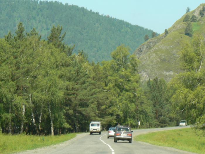 По договоренности были резервированы парковочные места для наших авто и катер для перемещения по озеру. На турбазе Кырсай мы забронировали 3 дня. Условия проживания там, конечно, интересные. Экстремальными их назвать нельзя. Я бы сказал так: максимально приближенные к природе. Чем-то напомнило пионерские лагеря в детстве. На сайте вся информация есть, можете посмотреть. Для проживания мы выбрали 1 аил (юрта) и две комнаты в коттедже на 2 этаже (с учетом детей). Так вот, до Артыбаша от Чемала около 260 км, чтобы добраться, необходимо было вернуться в Горно-Алтайск, а далее до Чои, Верхне-Бийска. От последнего надо повернуть направо и вдоль реки Бия мы прибыли на место назначения. Процесс движения сопровождают живописные виды за окном.