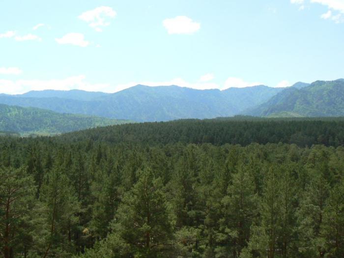 На площадке около пирамиды открывается красивый вид на Чемал.