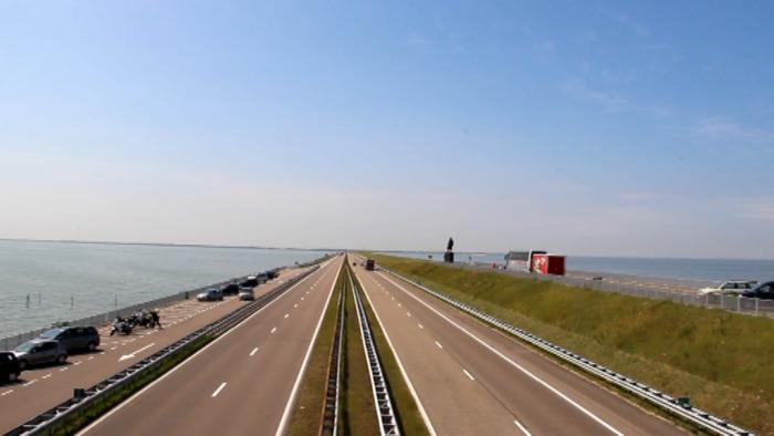 Протяжённость дамбы – 32 км., ширина 90 – 120 м. Посередине дамбы воздвигнут монумент её строителям, на который можно подняться ( рядом автостоянка и все удобства), а также памятник её основателю, инженеру – строителю Корнелису Лели, претворившему свою идею в жизнь!